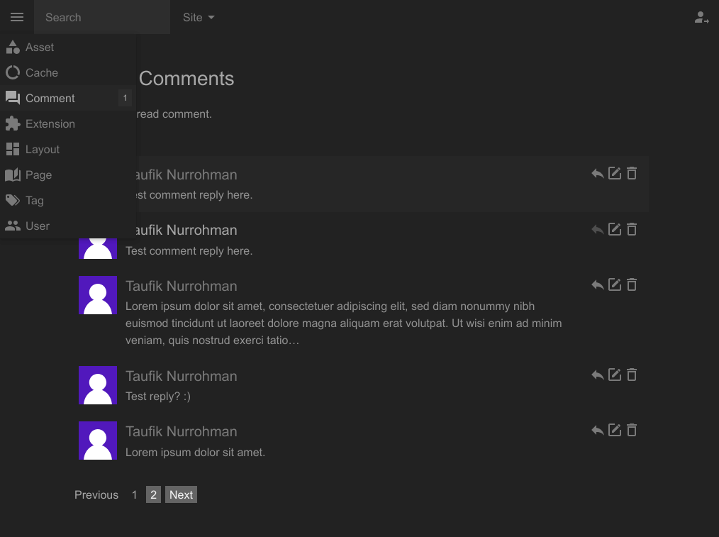 PreviousNextThis extension adds features to the control panel to make it easier to manage comment files.